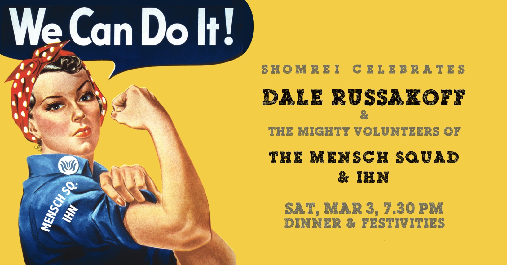 Join us as Shomrei Celebrates: Dale Russakoff and the Mighty Volunteers of the Mensch Squad and IHN.