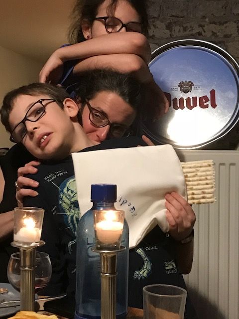 And on occasion, we even play with time to make it suit our needs as this picture of last week’s Shabbat dinnner shows when the children FINALLY found the afikoman hidden at Passover.