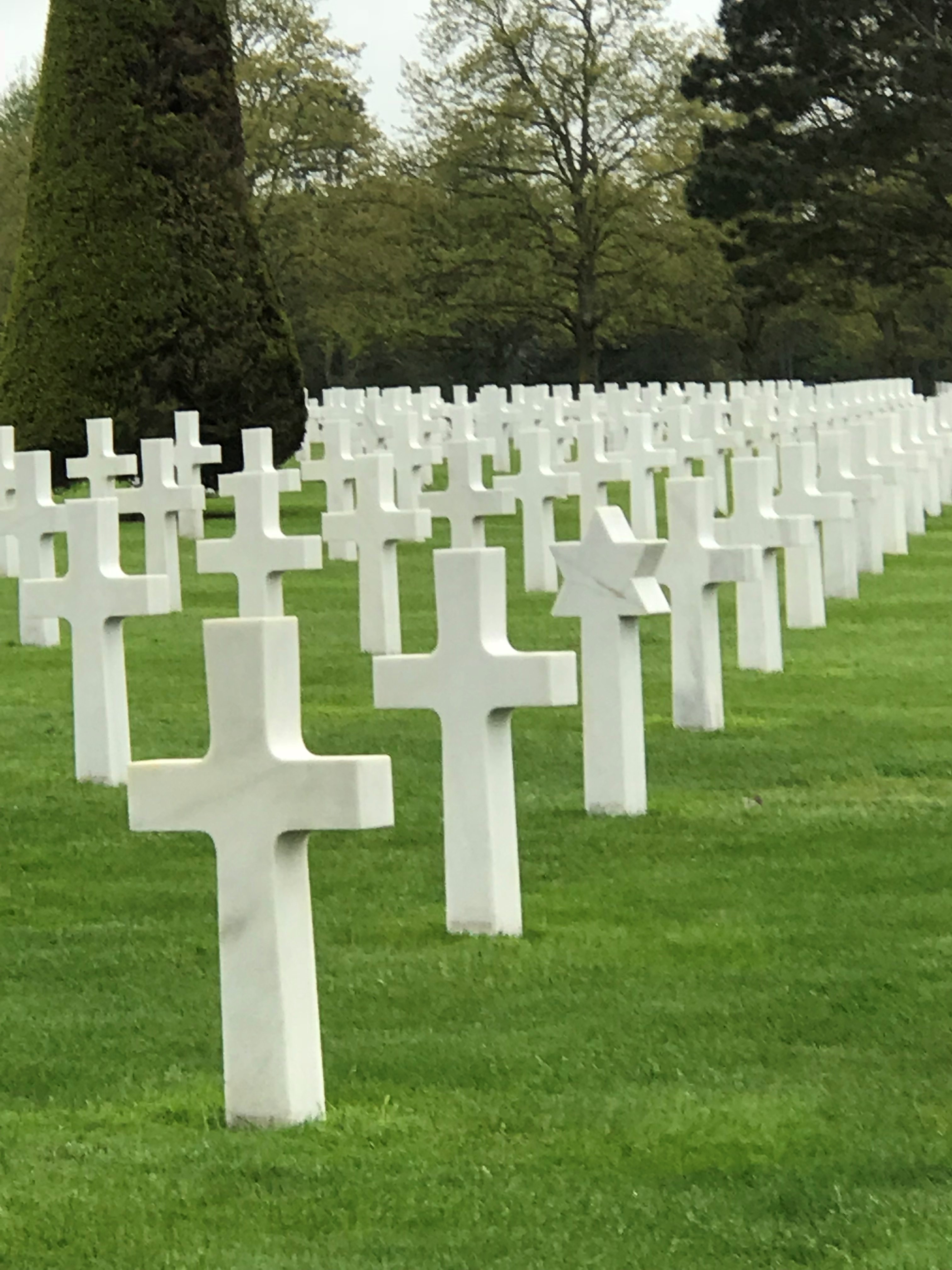 As one looks at the names, there are many Jewish sounding ones among the dead or missing. In the American cemetery at Colleville-sur-Mer, the rows of crosses are punctuated at regular intervals with Stars of David representing Jewish casualties.