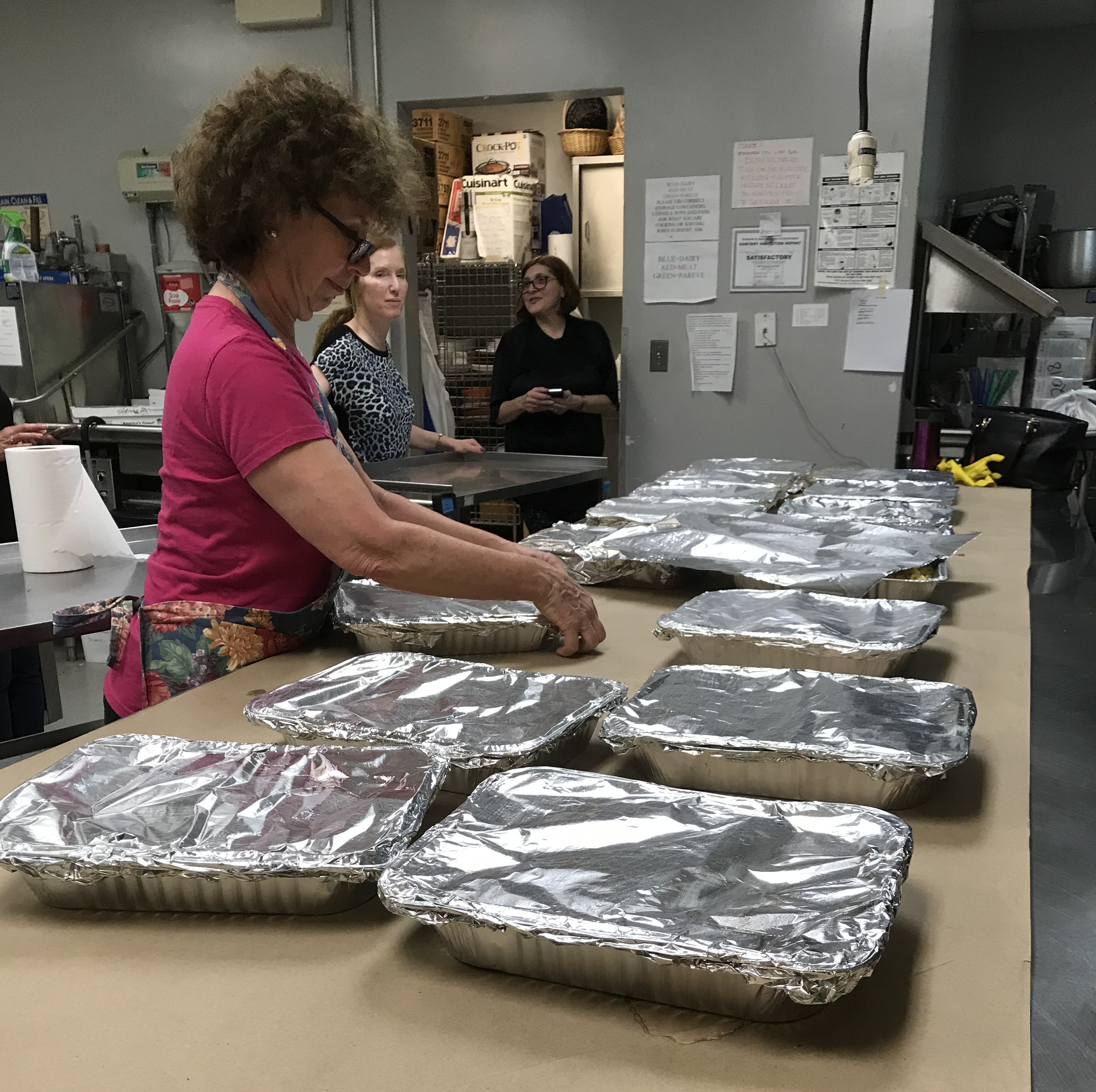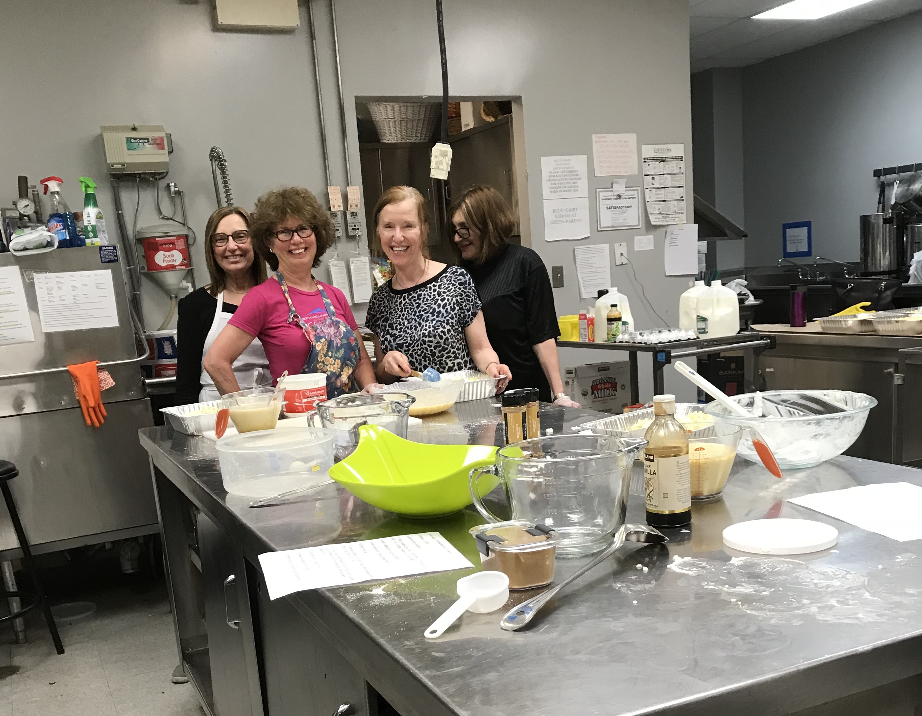 Last Thursday night a stalwart group of Shomrei cooks gathered to make sure that Shomrei would not be kugelless on Shavuot. Using Judy Wildman’s classic kugel recipe as inspiration, (see Judy’s Sweet Noodle Kugel, April 17, 2015). Aileen Grossberg, Beryl Hiller, Sharon Hurwich,Lynne Kurzweil, and Gail Stock spent a busy two hours making quick work of 16 noodle kugels to serve on Saturday night.