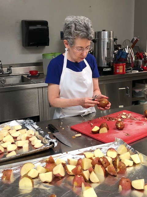 On a beautiful June evening we welcomed 24 guests to our cafe and provided 3 additional takeout meals. The outstanding team of Sarita Eisenberg and Sarah Steindel prepared a scrumptious summer meal, repurposing some leftover kiddish items graciously donated by the Greengrass family.
