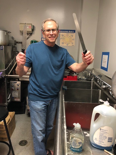 Lou Hammerman manned the sink, in addition to helping with food prep and serving. Super Shomrei teen, Amalia, pitched in with serving, scrubbing and then some sporting her perpetual smile. As always, our wonderful MESH staffers, Adrienne, Joe and Joe, made sure that everything ran smoothly. Only two more weeks before we break for the summer.