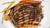 It seems that I spent days and multiple trips to the market, as well as phone calls and whispered secret tips about the availability of brisket for my twice a year homage to this traditional holiday cut of beef. If you’ve been lucky enough to score a brisket, this easy recipe is for you. It allows you to even sit back and relax a little (after all that running around) by using the secret formula for brisket: low and slow. The recipe is from the Joy of Kosher site developed by Jamie Geller.