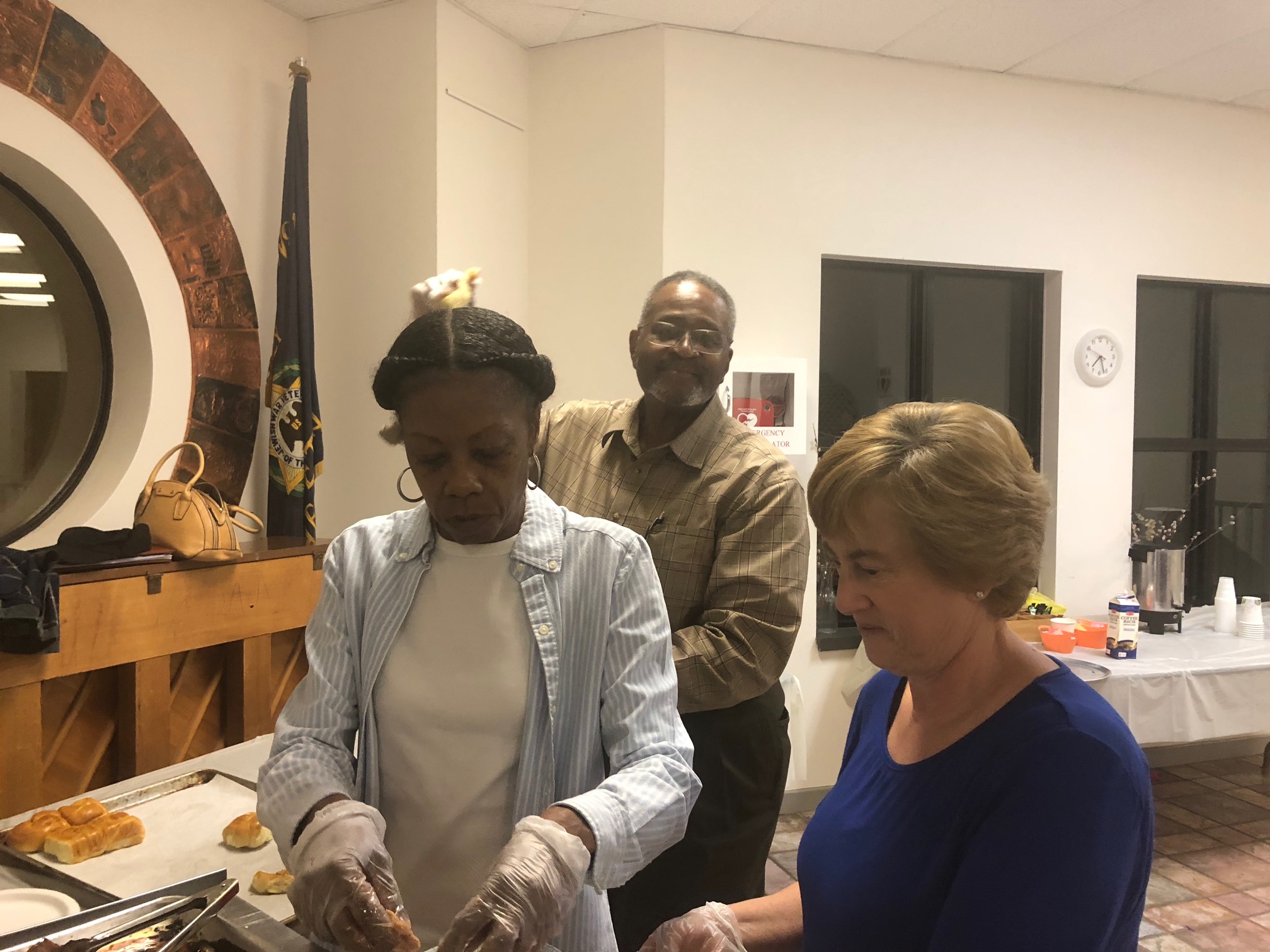 This past Tuesday night we welcomed a full complement of 24 seated guests to the Carol Starr MESH Cafe at Shomrei. We also prepared takeout meals for 7 guests, including a family with 3 children who arrived late. Chef Fern Heinig was in her prime, preparing a hearty and delicious meal. First course was fresh made egg salad and seared tuna (repurposed from the weekend). Main course was honey baked chicken, mashed potatoes, carrots, a tasty challah roll and a green salad with string beans, cucumber and green pepper.