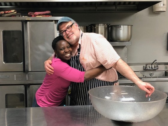 IMG_5041MESH staffers Adrienne, Bonnie and Darren took charge of setting up, serving, and clearing the tables assisted by yours truly and our teen volunteers.  Joe handled security downstairs. John and Beryl scrubbed down the counters and carts, leaving everything cleaner than they found it.