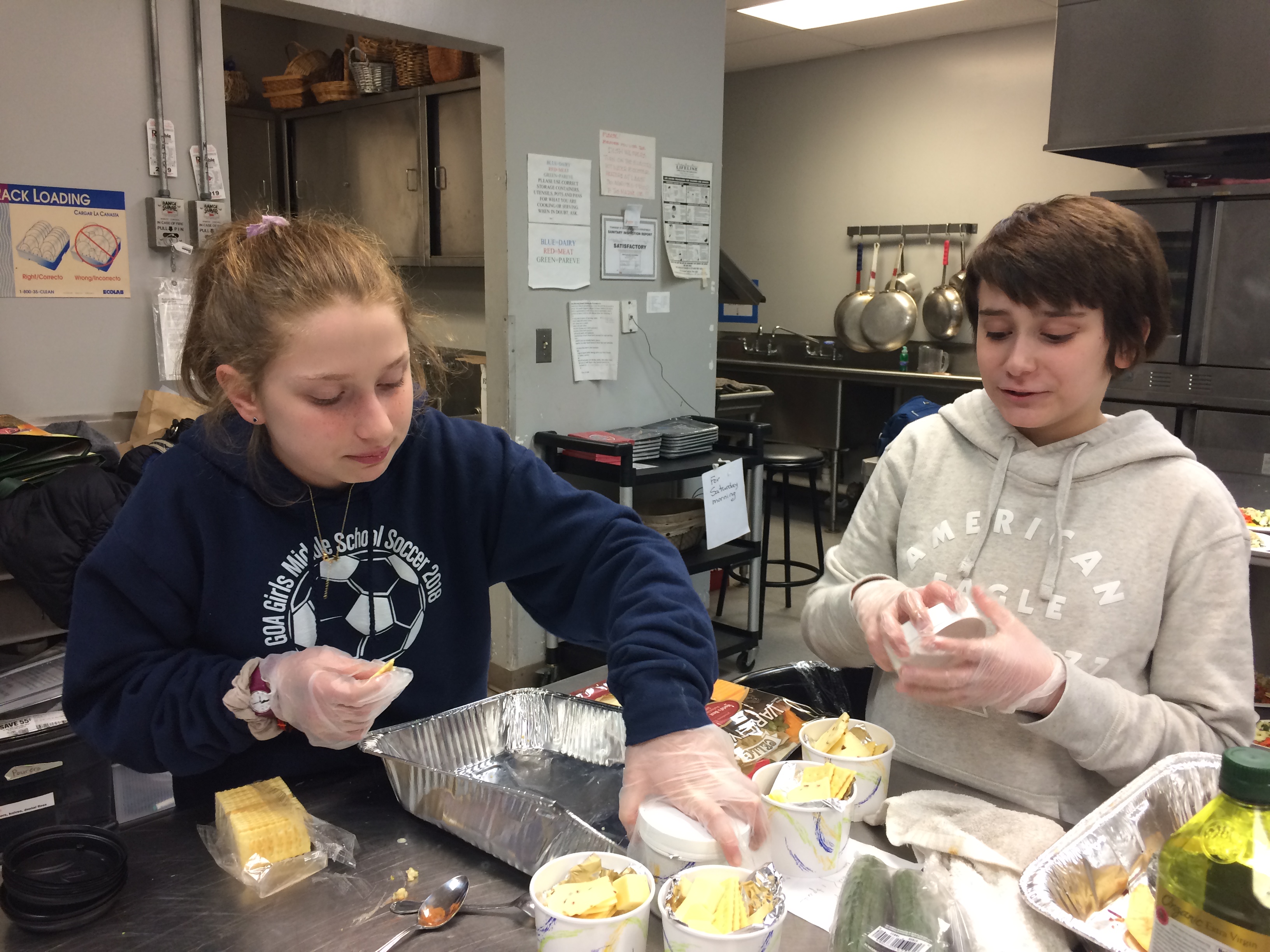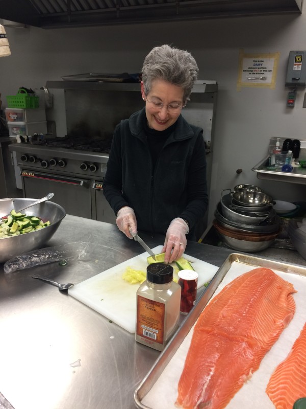 We were fortunate to have many volunteers helping to make this evening even more special. Emil Steinberg and Megan Harr graciously served our guests, and Lou Hammerman did his usual wonderful job in washing the pots, pans, and other items used in preparing the food and serving. Teens Jonah, Amalia, and Elana were enthusiastic in setting up the cafe, plating and serving the food, and being attentive to requests for seconds.
