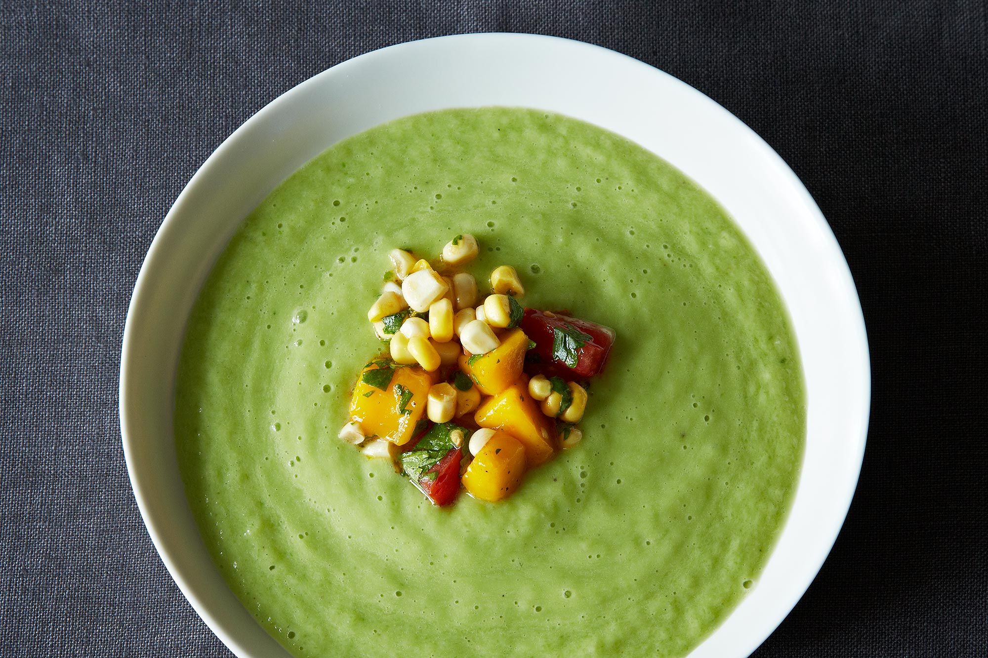 Chilled Cucumber and Avocado Soup with Mango Salsa (Serves 4)