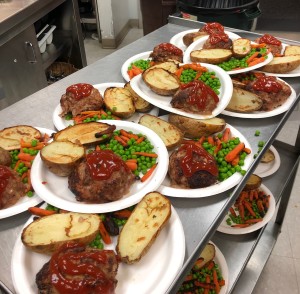 A special shout out to our able assistants: Jonah shaped the meat loafs very artfully; Orly and Elana cut the fruit precisely and perfectly–including the bananas!