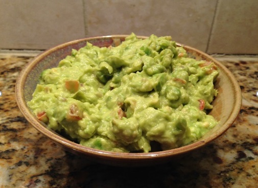 The recipe is from a friend of mine from my doctoral program days at City University of NY. It has become a standard at our home for Superbowl Sunday. A few days beforehand, the avocados magically show up on our counter to ripen. (Did I mention that Lou is the one who does the food shopping?)