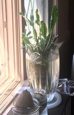 This was a wonderful suggestion from Lynne and Aileen’s Passover cooking program on our Passover Splash Day. I also tried it with a small piece of celery root and it brightens my windowsill by my kitchen sink.