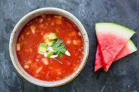 - If the watermelon wasn’t chilled before making the soup, put the gazpacho in the refrigerator until chilled, about 30 to 60 minutes.