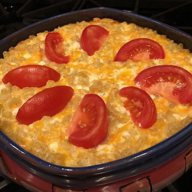 3. Arrange tomato wedges, if using, in circle on top. Bake 15 minutes more, until casserole is bubbly and tomatoes are tender.