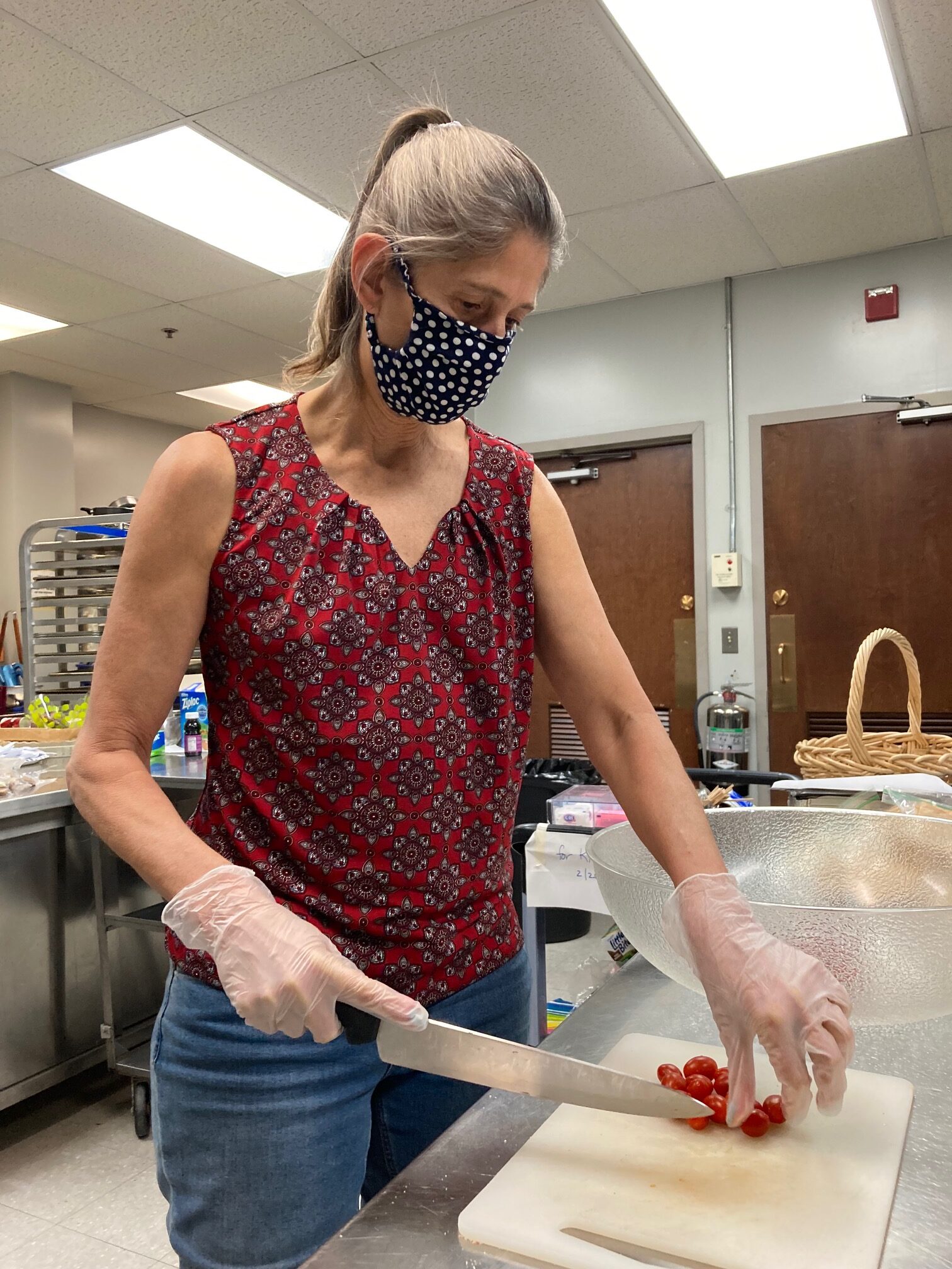 The aroma of sautéing onions and garlic filled the kitchen as Aileen and Alex efficiently prepared and packaged the meal to go.