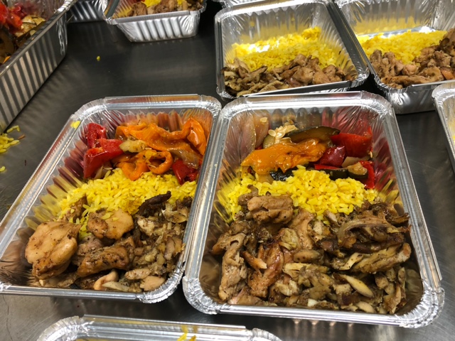 The main dish was Chicken Schwarma, roasted vegetables and rice, along with sides of potato salad, cole slaw and chopped salad. Lou Hammerman supplied rolls, Oreos, bananas and Nutrigrain bars. As always, individual bottles of Water were included in the dinner to go!