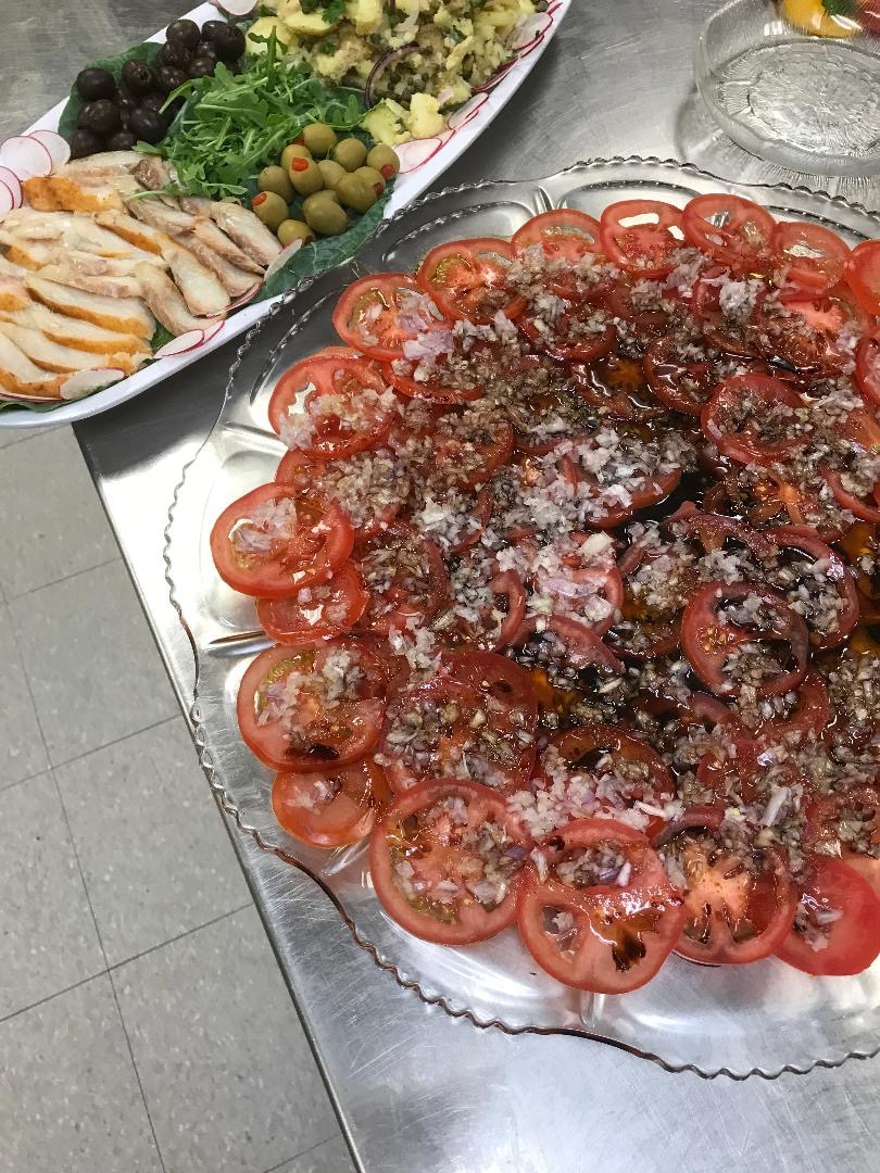 Preparing kiddush for Rabbi Greenstein and Zelda was a labor of love, all the more so because Rabbi Greenstein has made a point of dropping into the kitchen every Friday morning to thank the cooks. He has also in his role as Rabbi answered questions about food products and kashrut so that both halachic and culinary needs were satisfied.