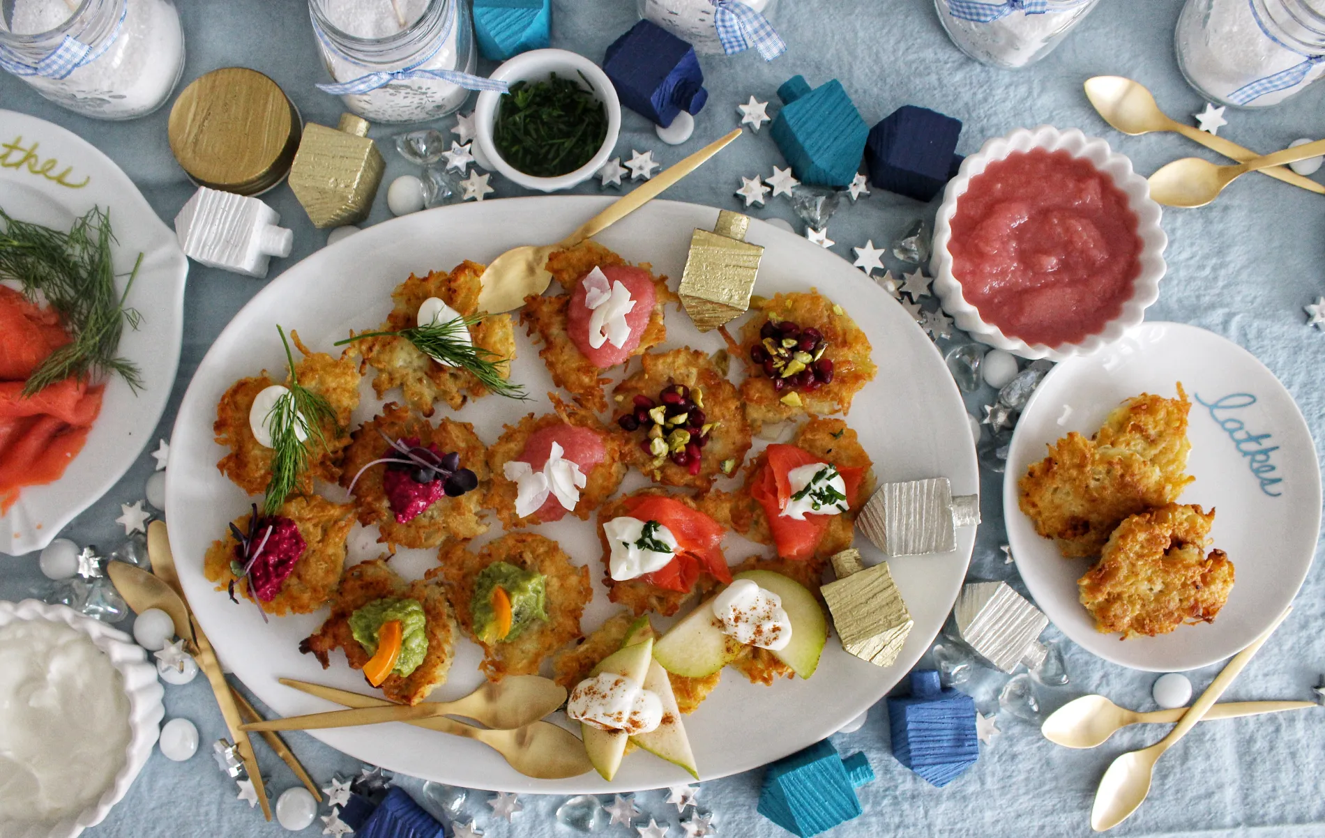 Enjoy a make-your-own latke topping bar with your favorite toppings and then some.