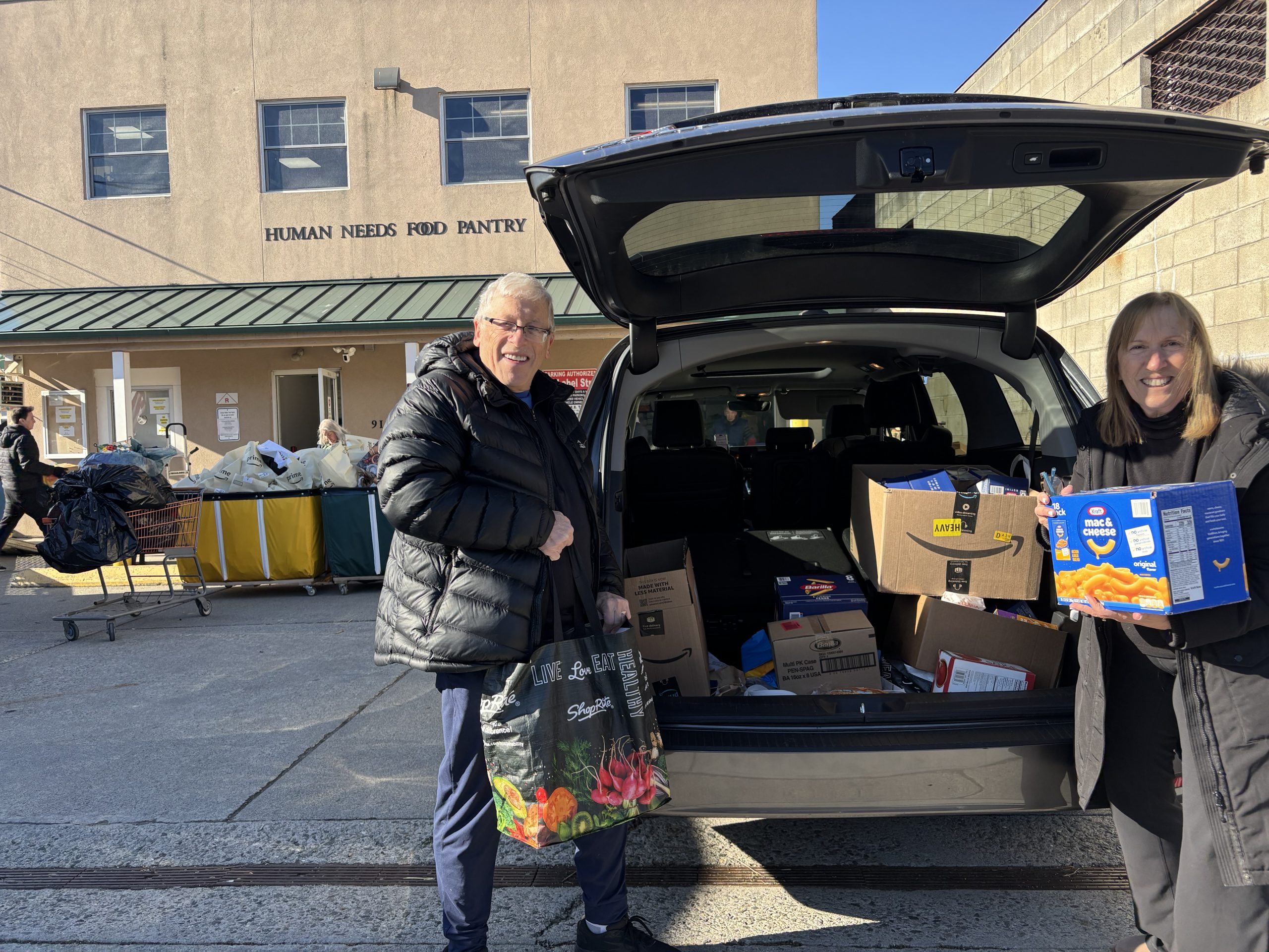 On Tuesday (March 24), Congregation Shomrei Emunah delivered the results of their spring Pasta Drive on behalf of the Human Needs Food Pantry. Members gave generously and filled an SUV with all they contributed.