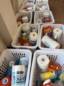 - Stuffing 24 laundry baskets with cleaning supplies to give to Family Promise for people who have found a new home.