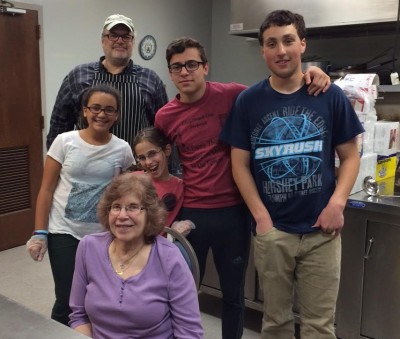 On a misty cool May evening, Shomrei’s MESH team served a tasty meal to 24 guests. Chef John Lasiter, ably supported by sous chefs Jerilyn Margulies and Deanna London as well as teen volunteers Louis and Max, prepared a menu of green salad and challah, paprika roasted chicken with roasted chick peas and cherry tomatoes, and chocolate matzah peanut clusters.