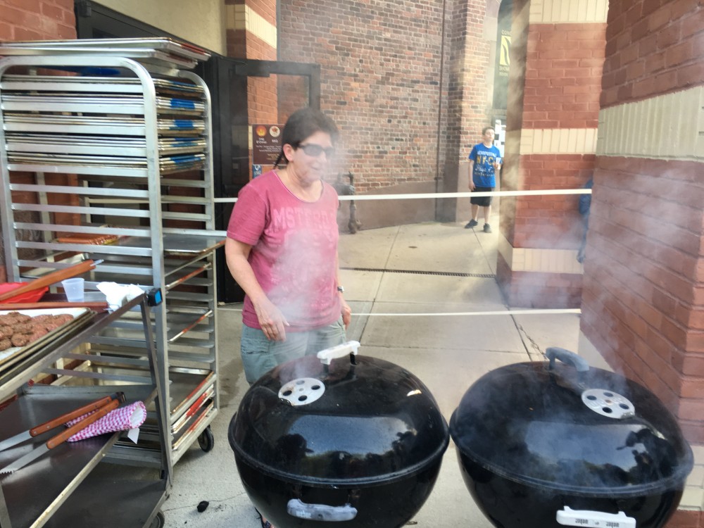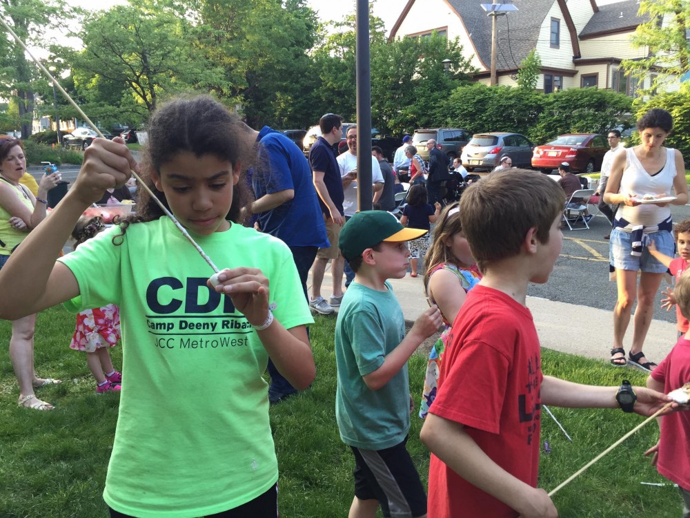 The BBQ, and Lag B’Omer fire pits (and marshmallow roasting) and games on the grass was enjoyed yesterday evening by nearly 90 congregants, preschool families and a few guests. The weather was perfect! President Elect and Grill Mistress, Fern Heinig faced her first trial-by-fire cooking up burgers and dogs for aided by Charlie Breslin and John Lasiter. Helping prep every thing in the kitchen were Adrienne Lasiter-Shulman, Merrill Silver and Nick Levitin.