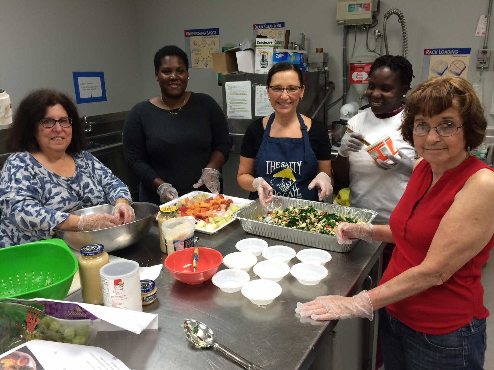 We had a wealth of volunteers. In addition to Lynne and Aileen, adult helpers included Shomrei members Erin Berman and Susan Rosenblatt, assisted by teens Siona, Sebastian, Eva, Sam, and Matt. Montclair State intern Amber is beginning her service with us, and MESH staffers Bonny, Adrienne, Joseph, and Mr. Wells rounded out the crew. The 24 guests enjoyed their meal, and we provided take-away meals for 3 additional people.