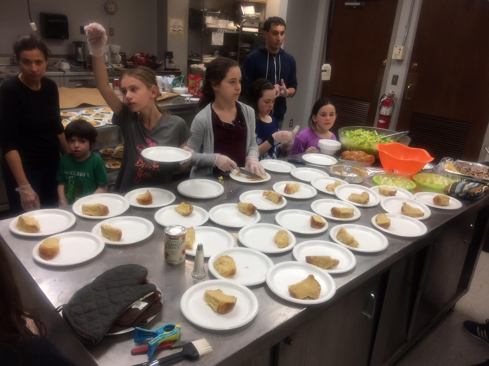 It was wonderful to see many JLC kids taking action to feed the hungry. Through this experience they learn more about food insecurity in our community. Abby, Collin, Delia, Eva, Hailey, Jordan, Josh, Natasha, and Olyvia cooked, plated, served, and cleaned — the whole nine yards. When it was ice cream sundae time, they went around individually adding chocolate sauce, whipped cream, sprinkles, and M&Ms by request. The guests so appreciated their smiling faces and kindness.